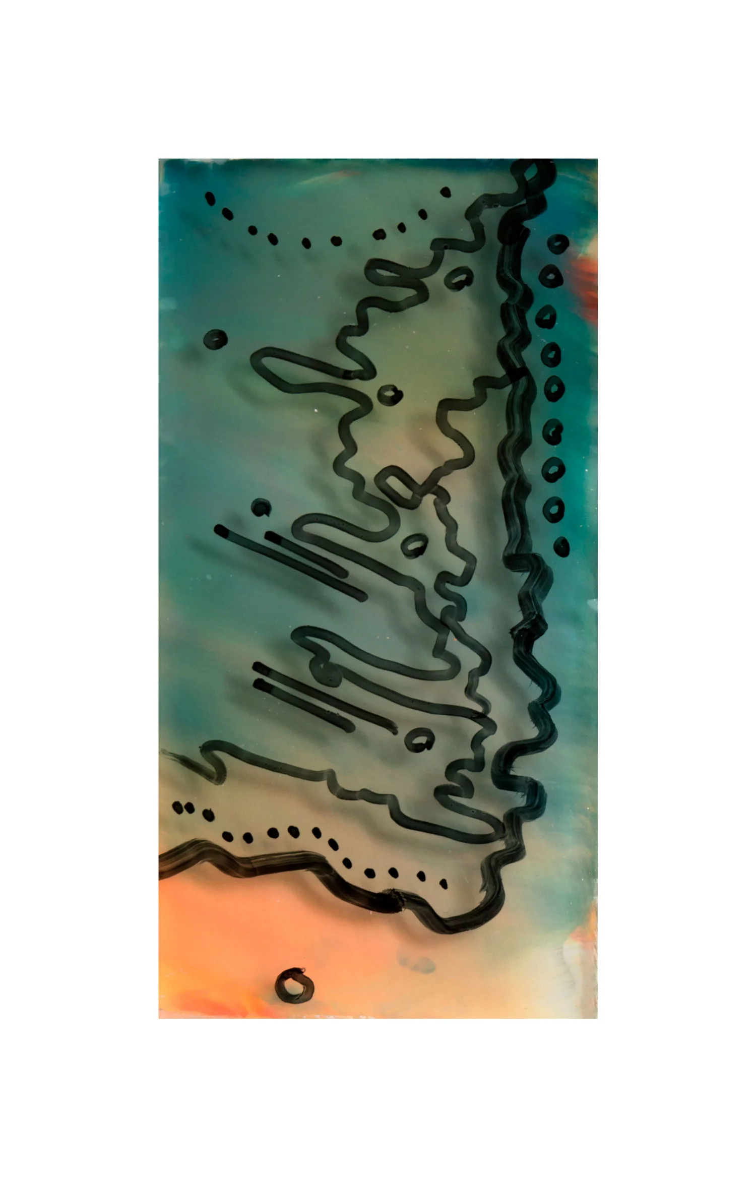 Slide Series (2017) is a series of 50 images taken of small (1" x 2 1/2" x 1/8") plexiglass slides produced as mimics of scientific slides that investigate scientific imagery and its ability to neutralize and alienate the source material. It acts as a landscape, drawing from influences of East Asian landscape painting and its scroll format to show a disjointed narrative - a small fraction of an artificial world. Slide Series (2017) and its original source are lost as the viewer pieces together a landscape and dialogue in their own individual perspective. It is alluring yet just out of reach of the recognizable.